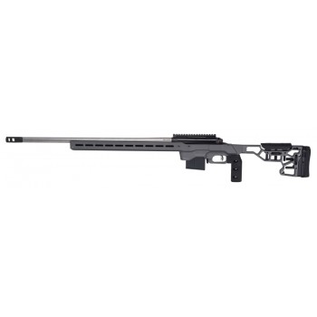 Châssis MDT ACC aluminium avec crosse entièrement réglable. Rail ARCA le long du châssis. Boîtier target inox avec revêtement nitride. Corps de culasse revêtement titane. Détente Accu Trigger personnalisable de 1,5 à 4 lb. Frein de bouche. Poignée verticale MDT. Chargeur standard AICS. Filetage 5/8X24.
