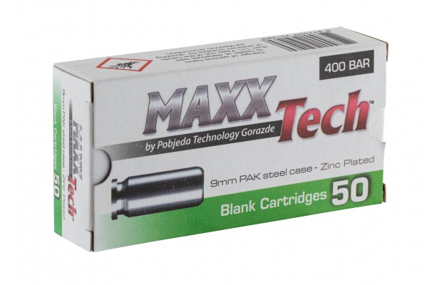 Munition a blanc MaxxTech pour pistolet Cal. 9mm PAK - Lot de 250 munitions