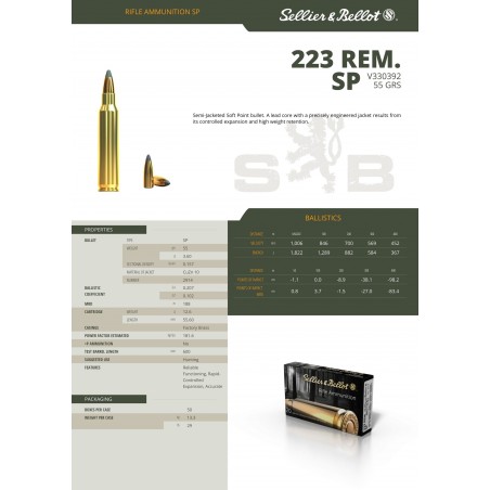 Balles Sellier & Bellot JSP 55gr Cal .223 Rem - Lot de 100 munitions
