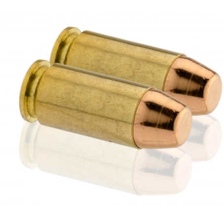 Cartouches à balles blindées (FMJ) flat nose pour armes de poing et pistolets mitrailleurs.