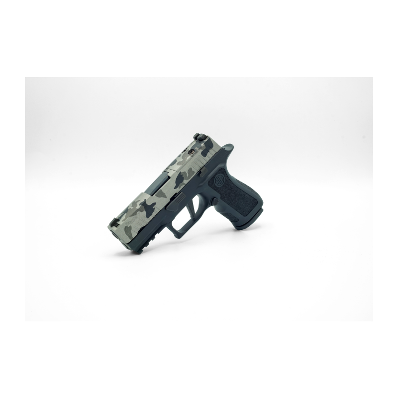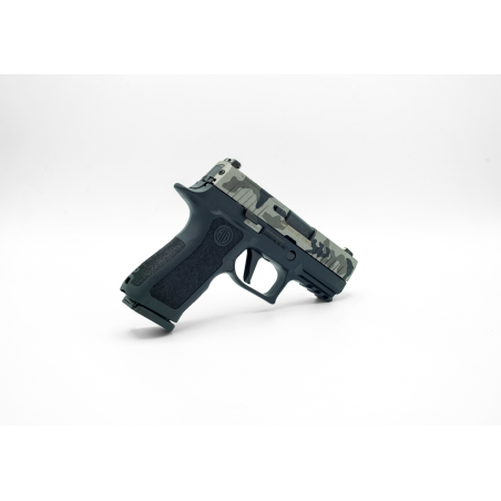 Le P320 Charcoal Mist incarne l'exclusivité et le raffinement dans sa forme la plus rare. Cette édition limitée, numérotée à seulement 9 exemplaires, est une pièce de collection prisée par les amateurs d'armes à feu. Sa culasse en Hexa-Camo gris crée un contraste subtil et sophistiqué avec la carcasse noire, offrant une esthétique à la fois distincte et élégante. Mais ne vous laissez pas tromper par son aspect remarquable : le P320 Charcoal Mist est bien plus qu'une simple œuvre d'art. Il partage les caractéristiques techniques de pointe du P320 X-Compact, garantissant des performances de tir exceptionnelles. Sa poignée X-Compact offre une prise en main ergonomique et confortable, tandis que la détente droite X-Séries offre une réactivité et une précision de tir inégalées. Équipé d'un rail Picatinny intégré, le P320 Charcoal Mist offre une grande polyvalence pour l'ajout d'accessoires tactiques, permettant une personnalisation optimale de l'arme selon les préférences de chaque tireur. De plus, son système "Optic Ready" permet la pose sans interface d'un Roméo Zéro Pro ou d'un Roméo 1 Pro, améliorant ainsi la précision du tir et l'expérience de visée. Chaque P320 Charcoal Mist est livré dans une mallette de transport exclusive, accompagné de deux chargeurs, assurant une expérience complète dès sa réception. Cette pièce rare et prestigieuse incarne l'union parfaite entre fonctionnalité et esthétique, destinée à être admirée et appréciée par les collectionneurs et les passionnés d'armes à feu.