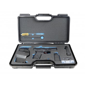 Il est livré en mallette avec un dos de poignée, un chargeur supplémentaire, une chargette, un étui de ceinture et un nécessaire de nettoyage.